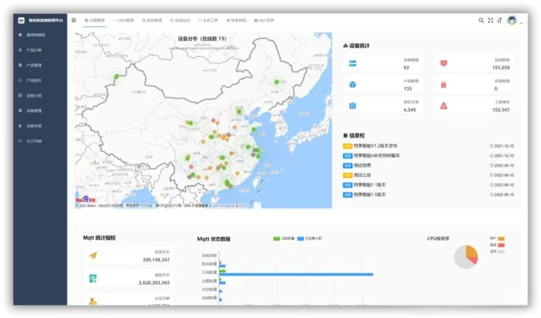 其他功能:多租户、统计、新闻资讯、通知公告、支持TDengine时序数据库