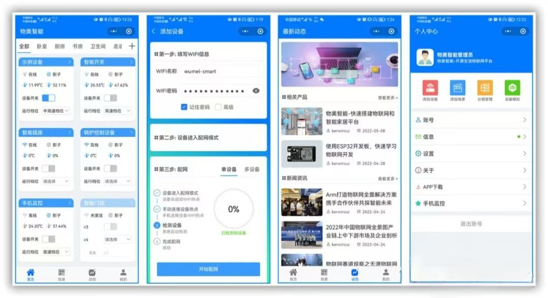 EMQ管理: Mqtt客户端、监听器、消息主题、消息订阅、插件管理、规则引擎、资源 - 硬件 SDK: 支持WIFI和MQTT连接、物模型响应、实时监测、定时上报数据、AES加密、NTP时间、AP配网等